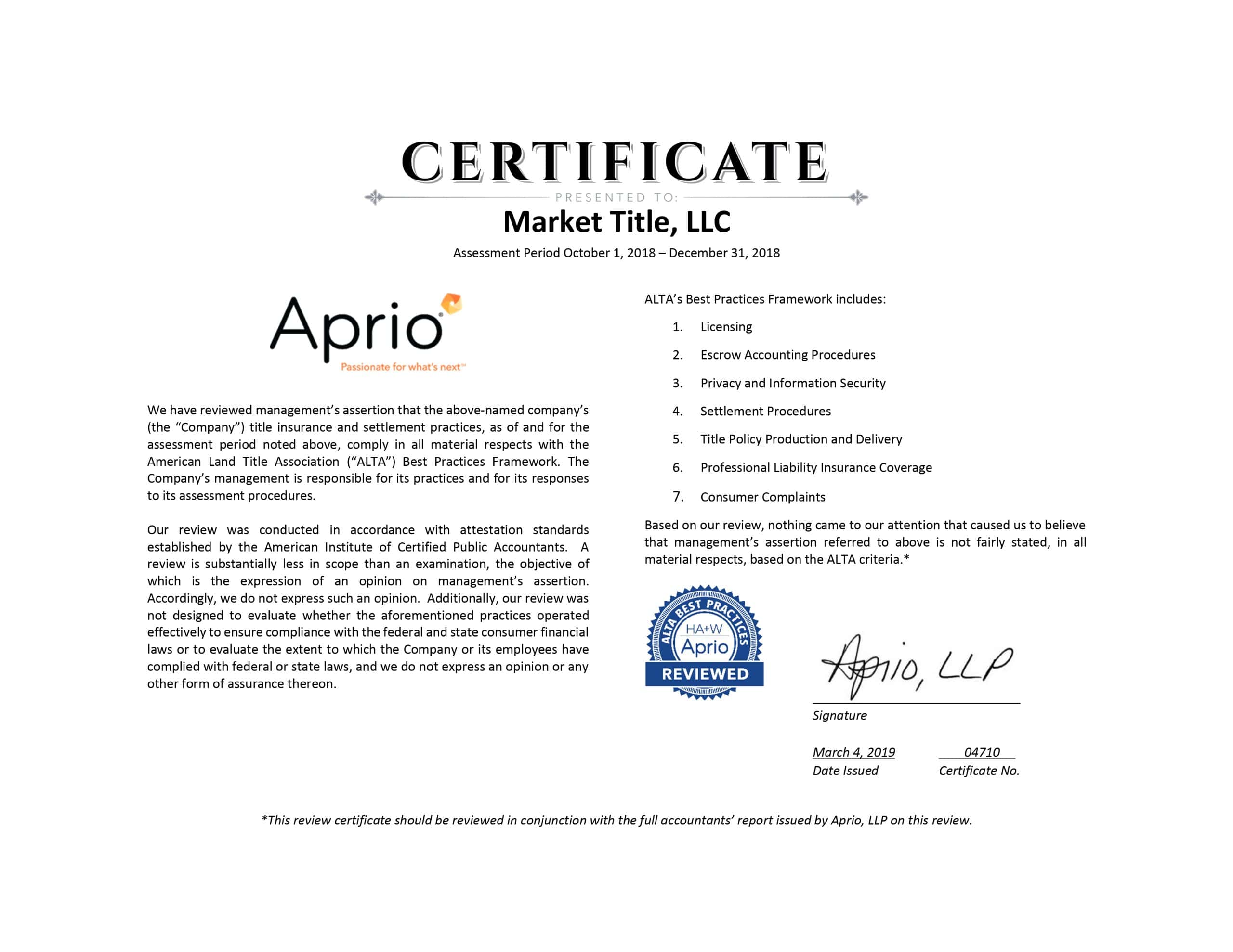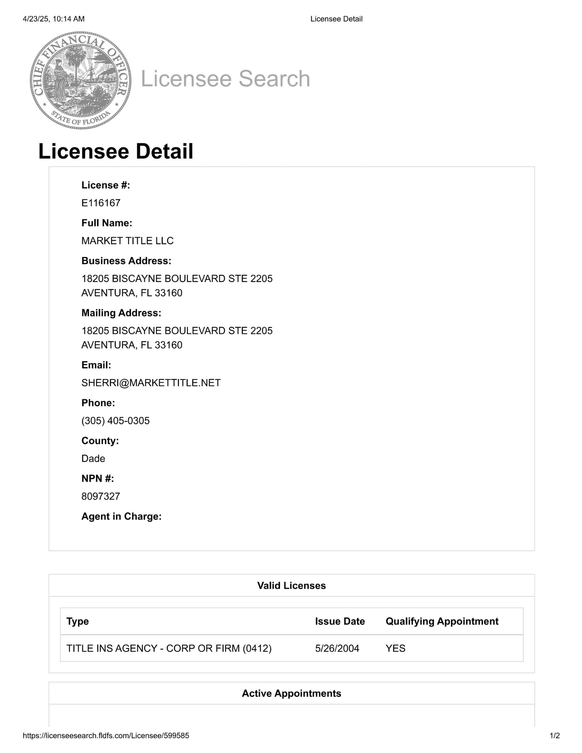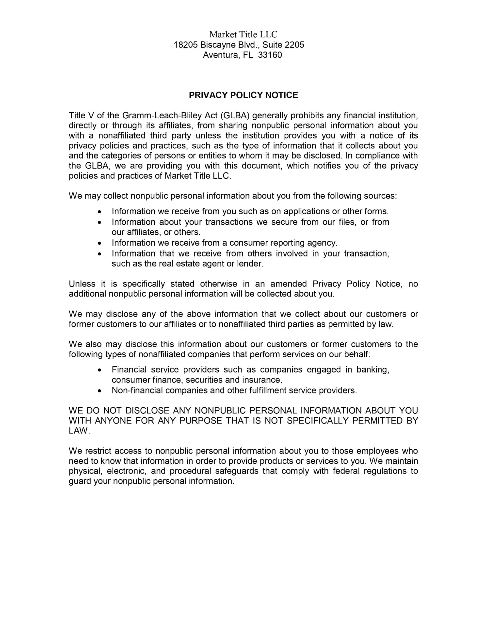 Market Title Office Information